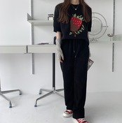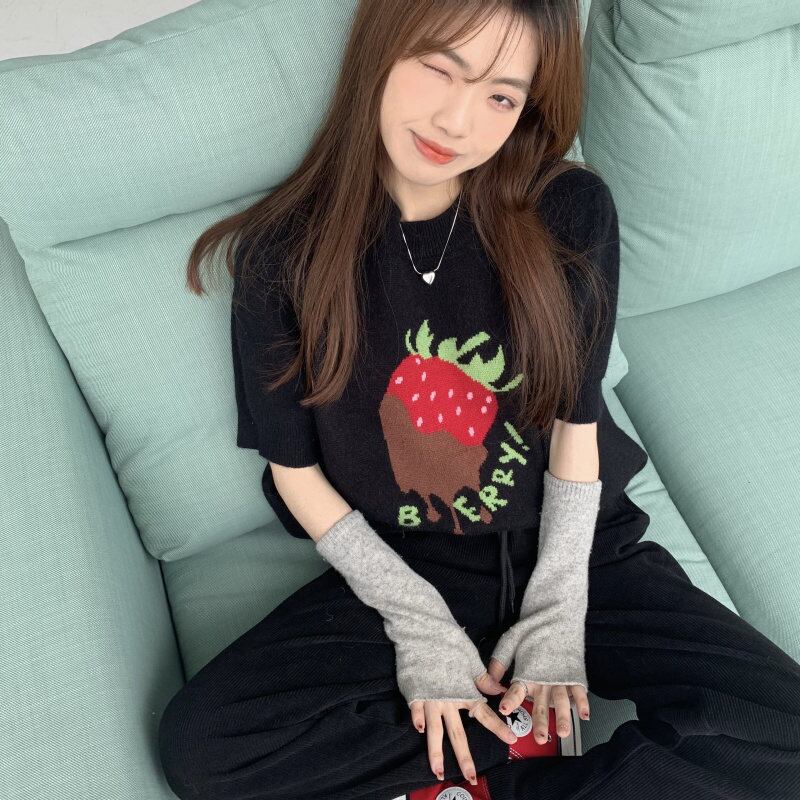 胸元のさくらんぼやいちごの柄がキュートな演出をしてくれます。