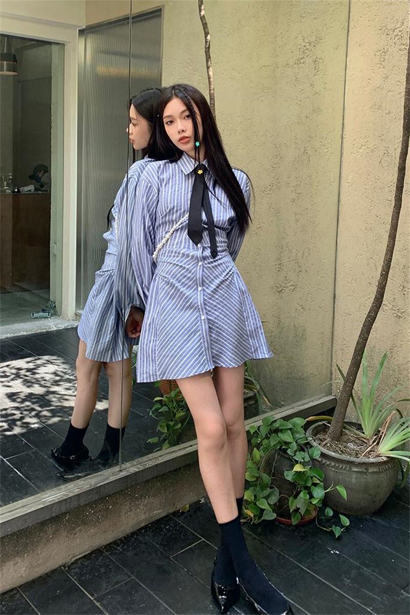 2024夏の新作、韓国系カジュアルストライプ柄ワンピースが登場しました。おしゃれなストライプ柄が目を引く一枚は、程よい落ち感が女性らしさを引き立てます。スタイルアップも叶えられる嬉しい仕様です。