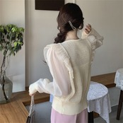 ニットトップス 怠惰な風 上着 木耳エッジ シャツ 縫付 スリム ギャザリング