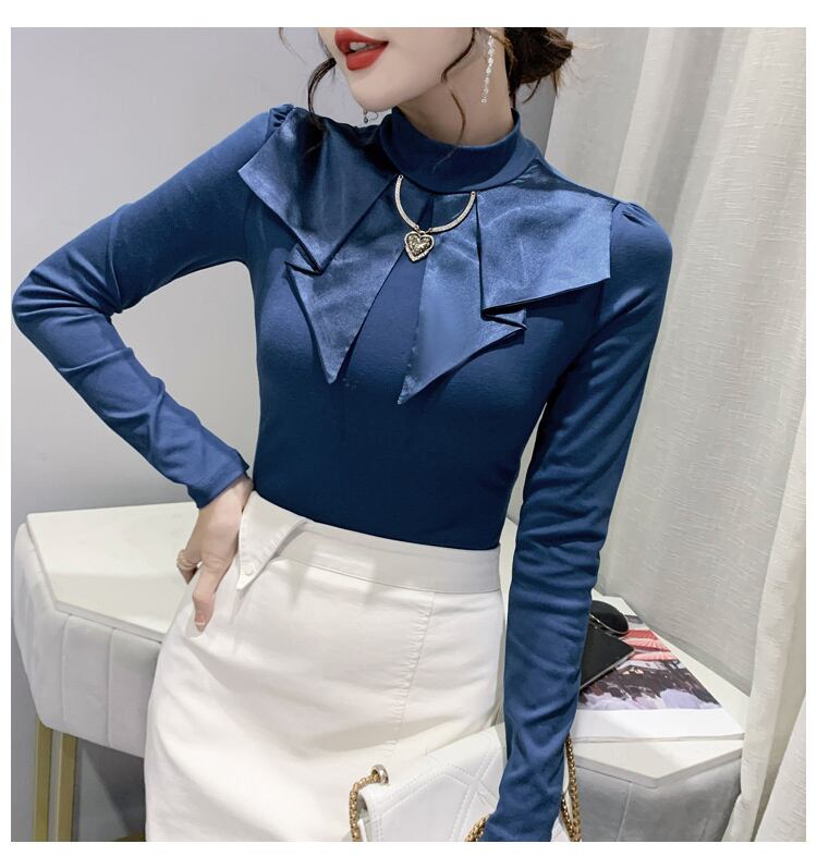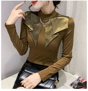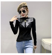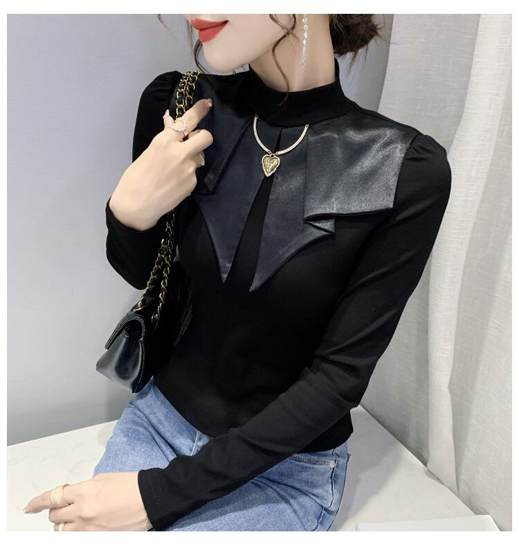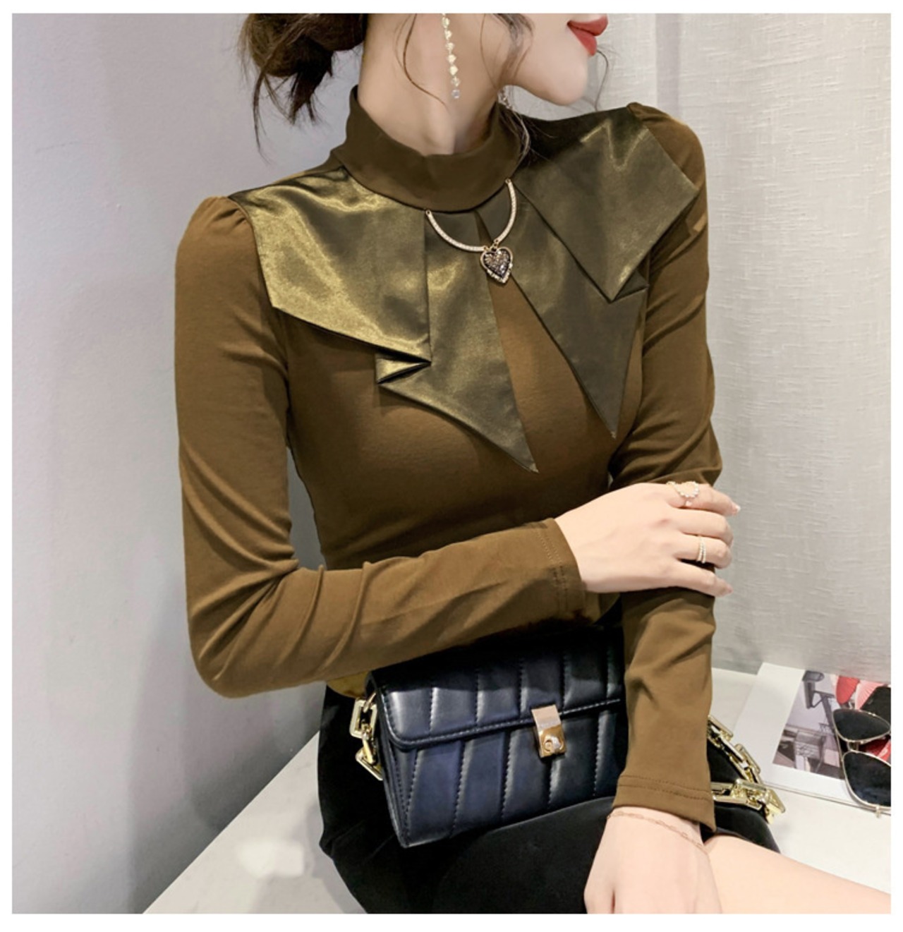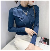 韓国の人気爆発 チェーン プリーツ デザインセンス ベースシャツ 上着 長袖 Tシャツ スリム 気品
