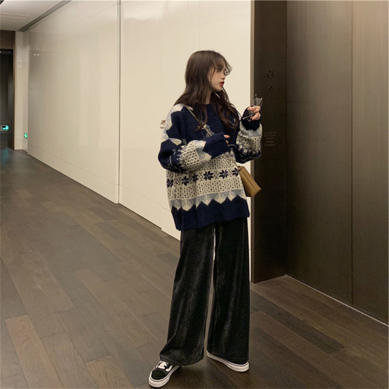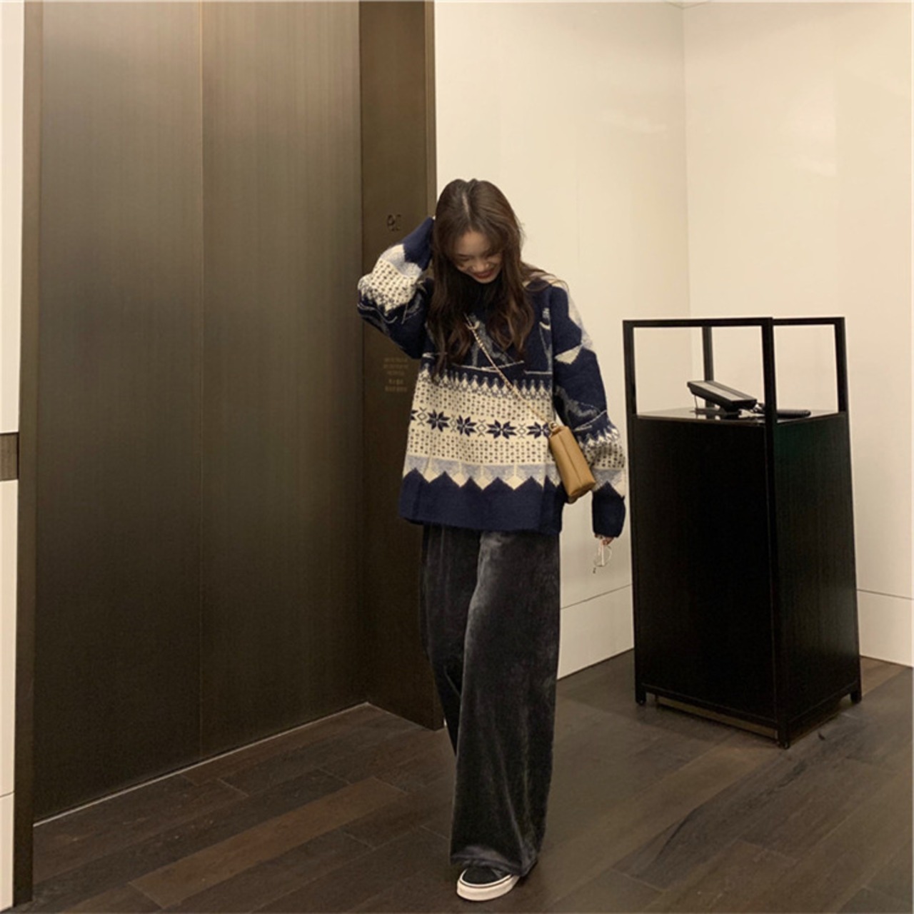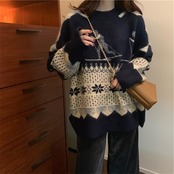 レトロ セーター スリム 肌にやさしい ラウンドネック ニットトップス 柔らかい