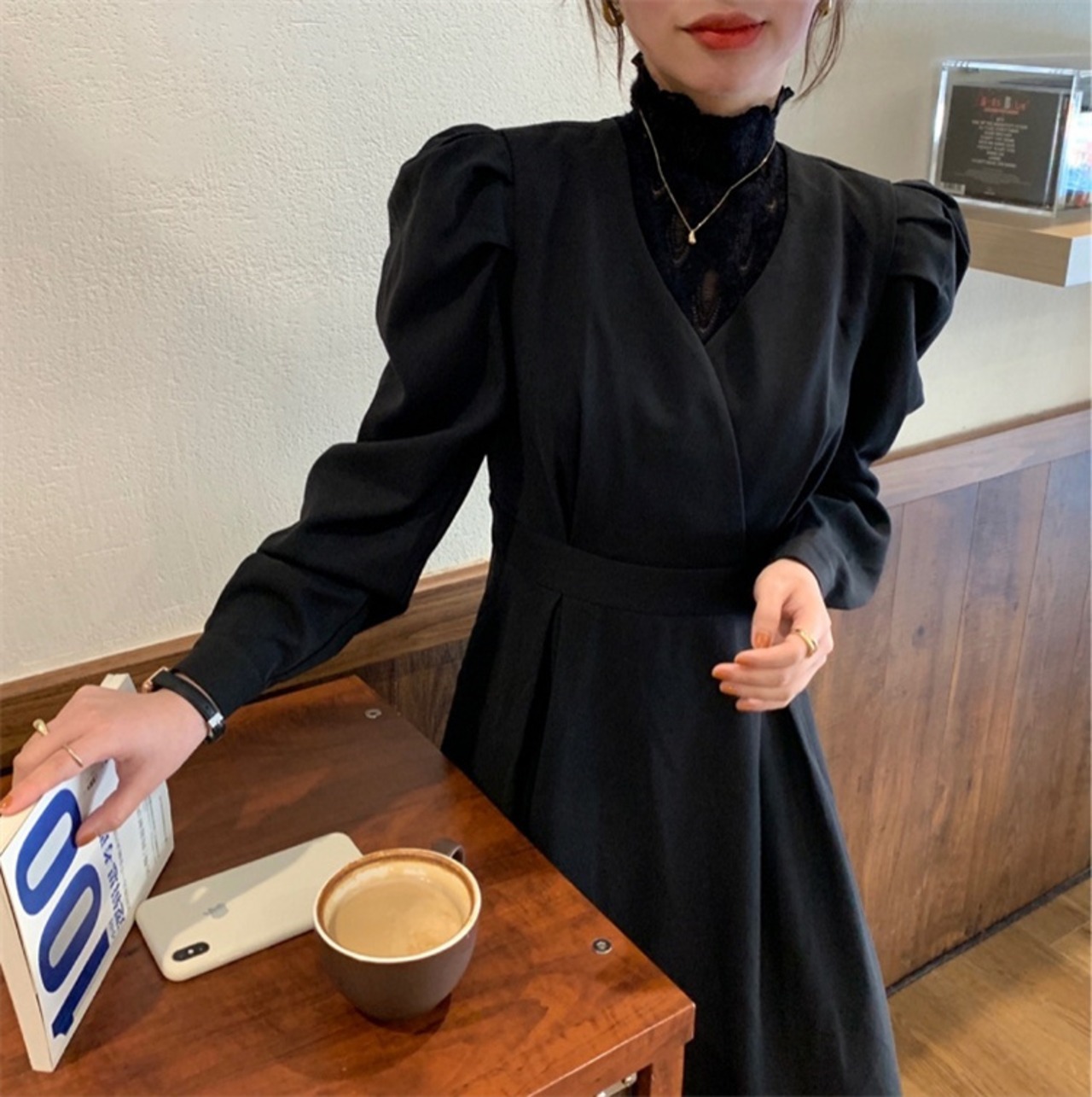 パフスリーブがロマンティックな雰囲気を演出するワンピース。フェイク2ピースデザインで、一枚で着るだけでおしゃれに決まるアイテムです。レースのディテールが女性らしさを引き立て、スリムなシルエットでスタイルアップも叶います。ハイウエスト設計で脚長効果も抜群。忙しい朝でも、おしゃれに決められる頼れる1着です。